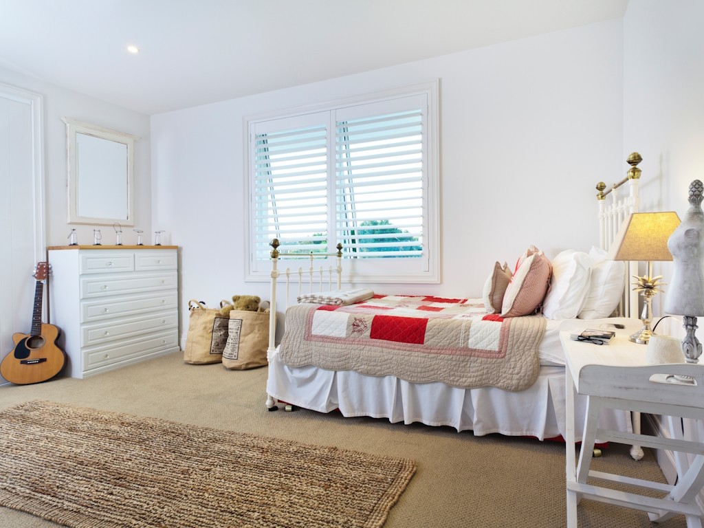 Intr-un dormitor amenajat in stil minimalist ele pot fi o solutie potrivita.