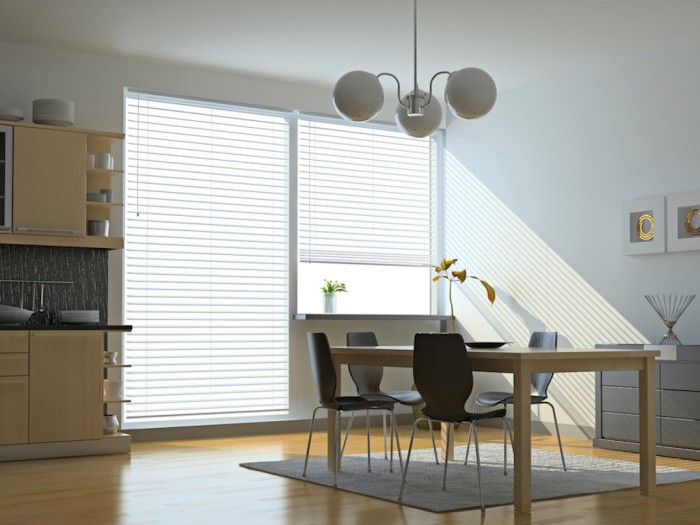 Jaluzelele orizontale din aluminiu isi gasesc utilitatea intr-o astfel de camera fiind usor de intretinut si manevrat.