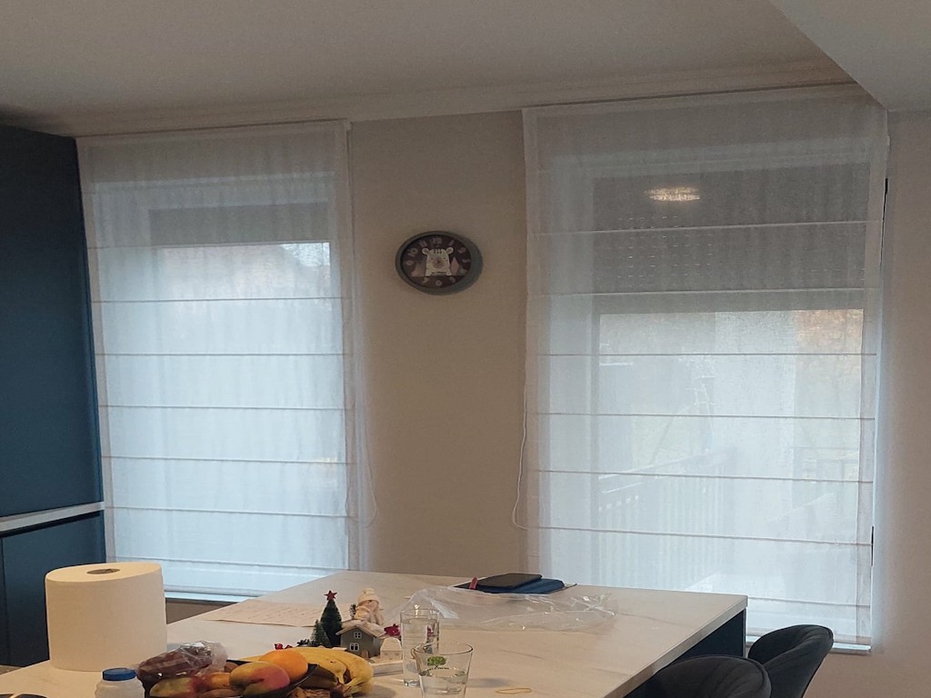 In bucatarii, jaluzelele romane pot fi montate direct pe fereastra sau pe peretele care incadreaza fereastra.
