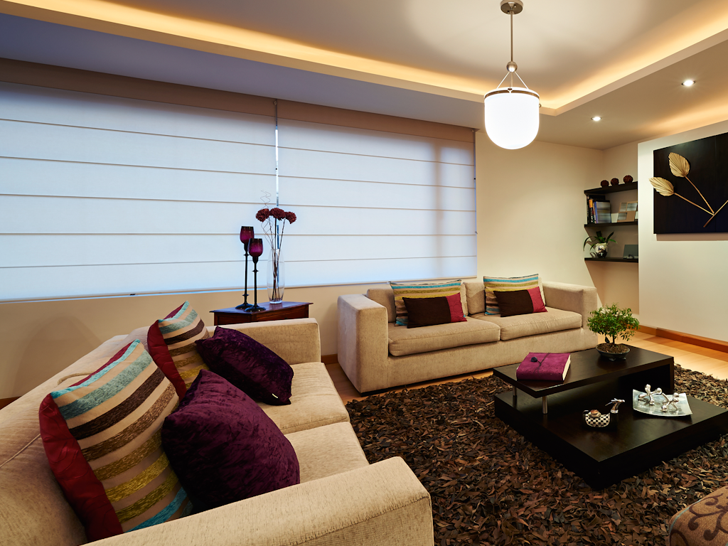 Aflate la granita dintre clasic si modern, jaluzelele romane pot fi folosite in orice tip de living, alegand materialele potrivite din paletar.