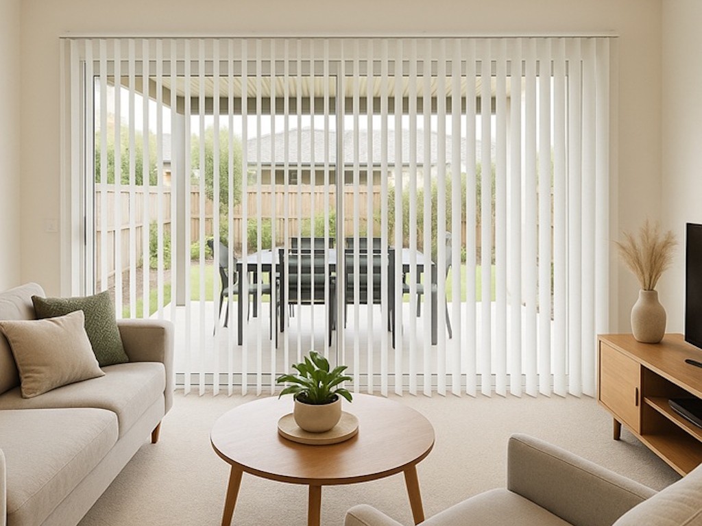 Jaluzelele verticale raman si in prezent o solutie de umbrire foarte folosita pentru livinguri, mai ales la cele cu ferestre de dimensiuni mari.