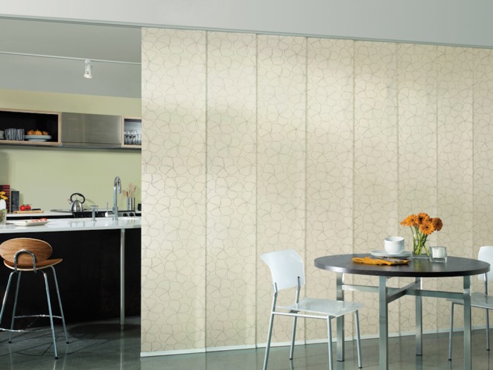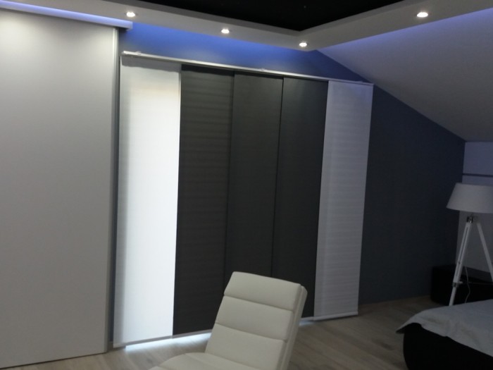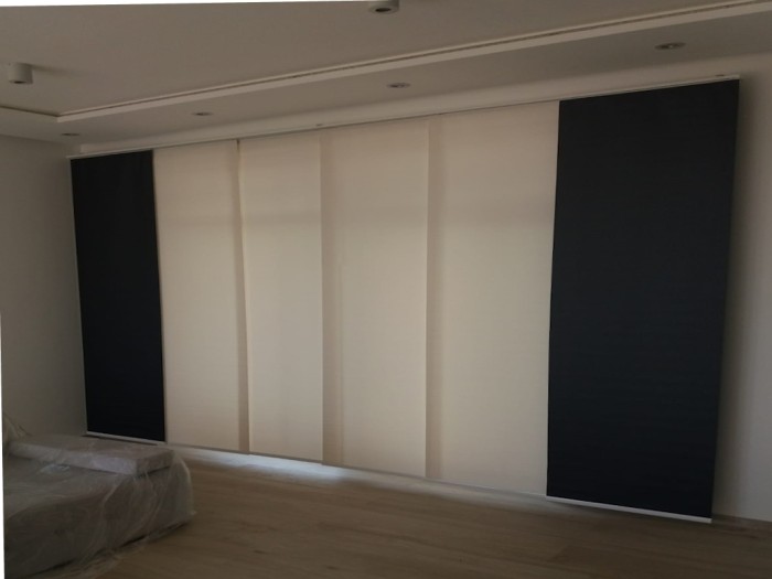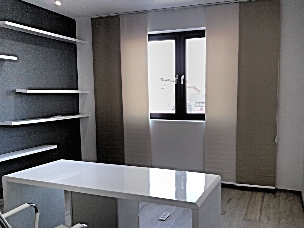 Pentru birourile moderne sau in stil minimalist, solutia de umbrire cu paneluri japoneze este foarte potrivita.