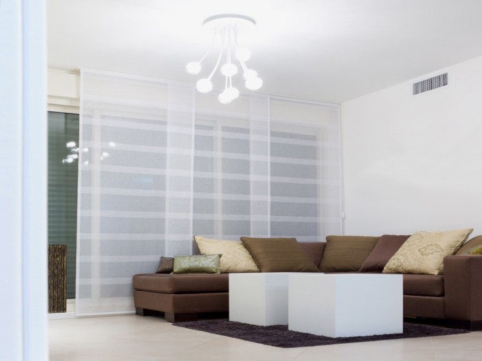 Folosindu-le din tavan pana in podea, pot indeplini pe langa functia de umbrire si pe cea de compartimentare interioara a livingului.