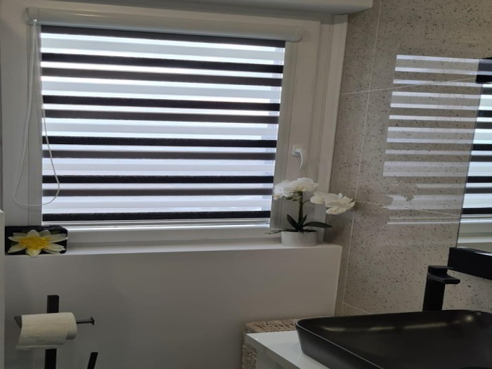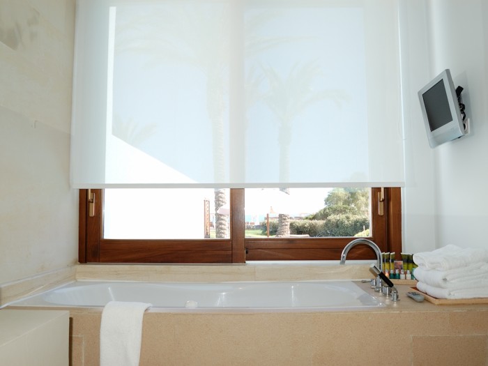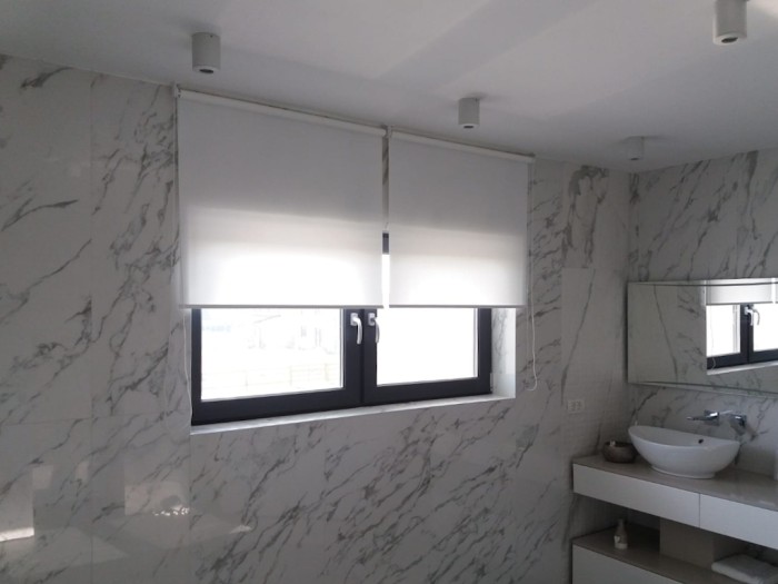 Din aceasta cauza, unul dintre cele mai recomandate produse de umbrire pentru ferestrele bailor este ruloul textil cu caseta si ghidaje laterale, care ocupa spatiu minim si mentine materialul textil apropiat de geam si atunci cand fereastra este in pozitie rabatata.